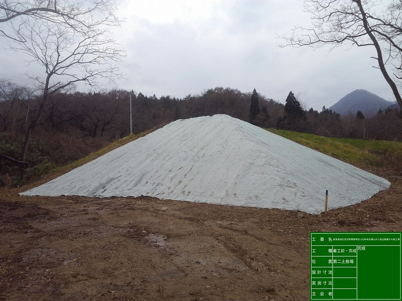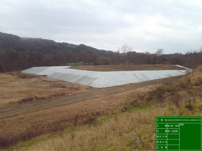 工事用道路撤去 延長488.2m、盛土工88㎥、植生工3,570㎡、仮設工(敷鉄板)204㎡、非常用発電設備1台、断面修復工14㎡、表面被覆工11㎡、鉄筋コンクリート6.7㎥