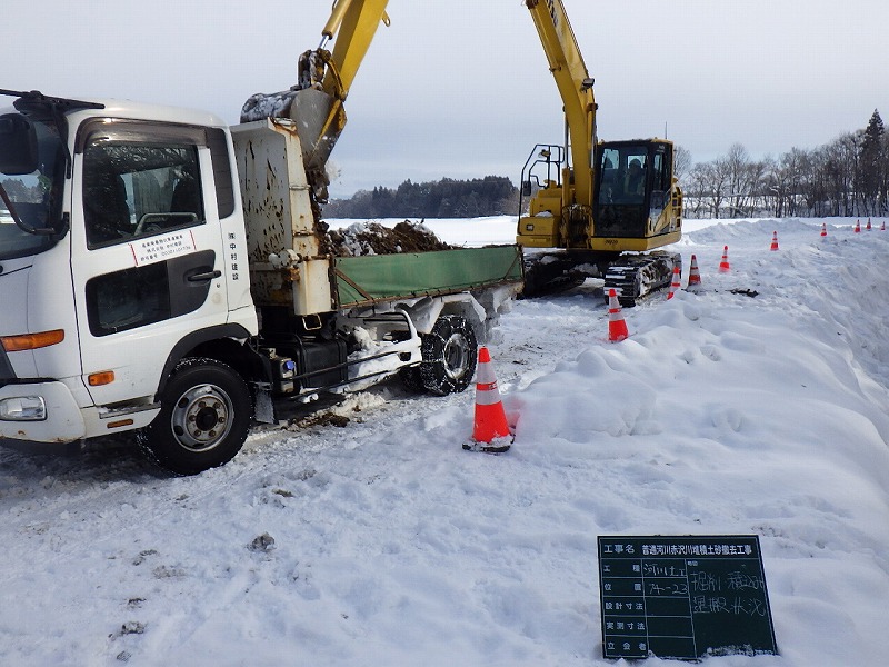 堆積土砂撤去工(赤沢川:上流)530㎥、堆積土砂撤去工(赤沢川:下流)360㎥、大型土のう工21袋