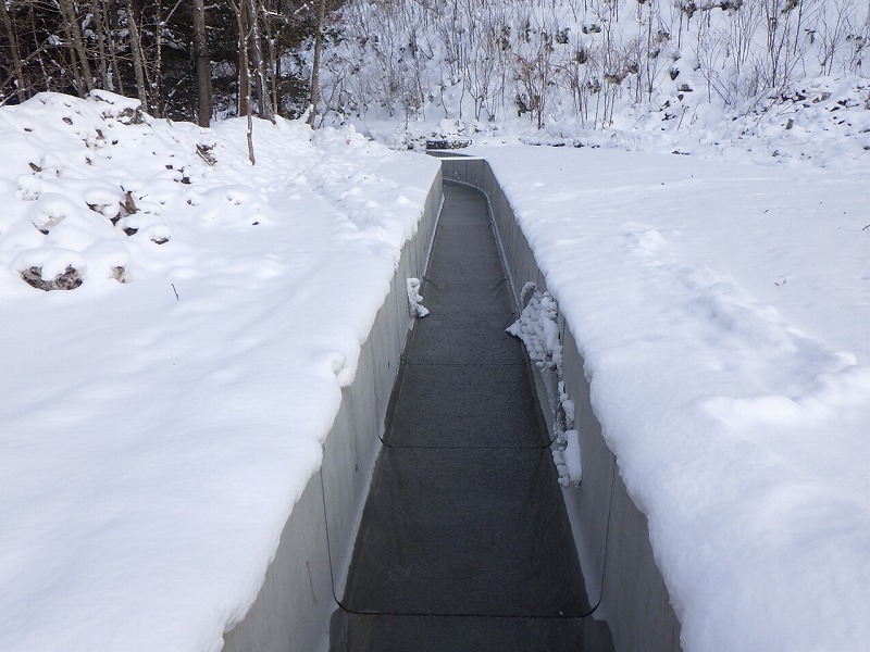 ため池改修工1池、付属施設工(洪水吐工、上流放流工)86.59m、放流施設工(放水路工、減勢工)158.9m、掘削工5,753㎥、コンクリート打設192.4㎥、アスファルト舗装工290㎡、路面保護工(ブロックマット)228㎡