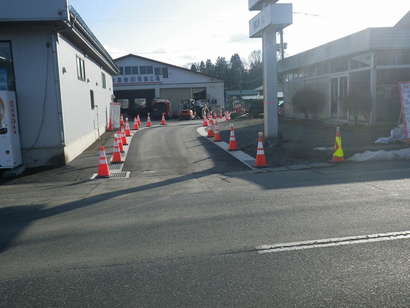 施工延長155m、道路土工1式、地盤改良工130㎥、排水構造物工310m、舗装工550㎡、境界杭 15本